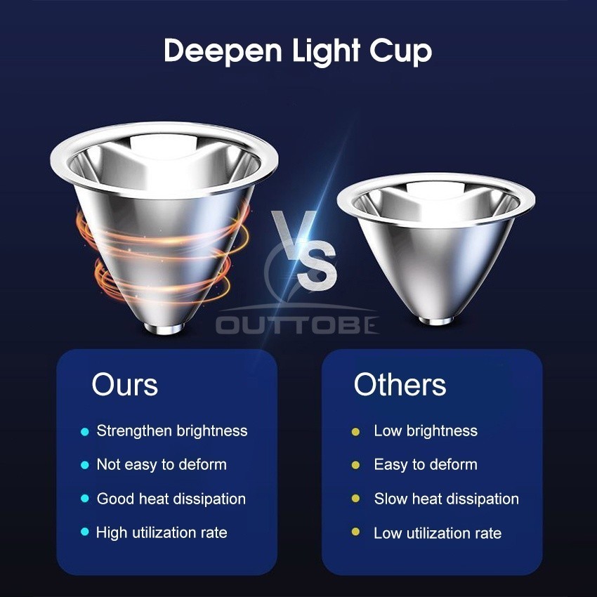 -Đèn pha: có cốc nhôm sâu phản chiếu ánh sáng tốt hơn nhựa thông thường.