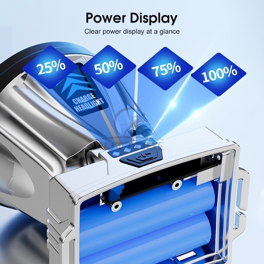 -Chỉ Số Sạc: Đèn pha được trang bị đèn báo sạc 4 ô màu xanh lam sáng để bạn kiểm tra mức pin.