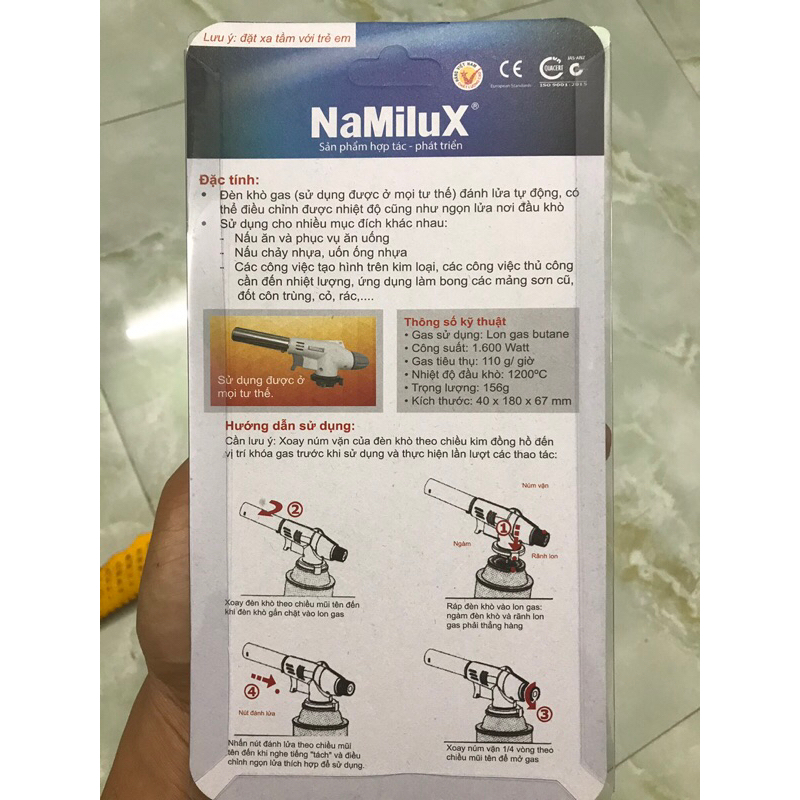 – Sản phẩm dùng bình gas mini với cách sử dụng cực kỳ đơn giản. Bạn chỉ cần lắp đèn vào miệng bình gas, xoay cho khớp sau đó vặn núm phía sau đèn và ấn nút là có thể sử dụng. Ngoài ra khi dùng xong, bạn còn có thể cất giữ gọn gàng để cho lần sử dụng kế tiếp.
