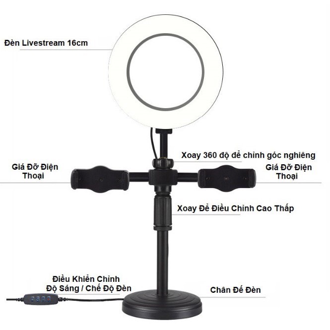 Rất là tiện lợi Bộ Phụ Kiện Live Stream là bộ sản phẩm vô cùng hữu ích cho cuộc sống hiện đại. Bộ Phụ Kiện Live Stream được thiết kế vô cùng đặc biệt bằng khung kim loại cao cấp có thể điều chỉnh tùy thích các góc độ. Trục đỡ điện thoại và trục đỡ đèn bằng được kết nối bằng viên bi nên có thể xoay 360 thỏa thích.