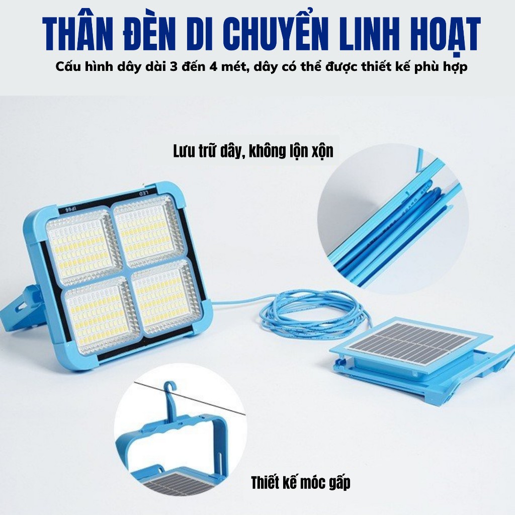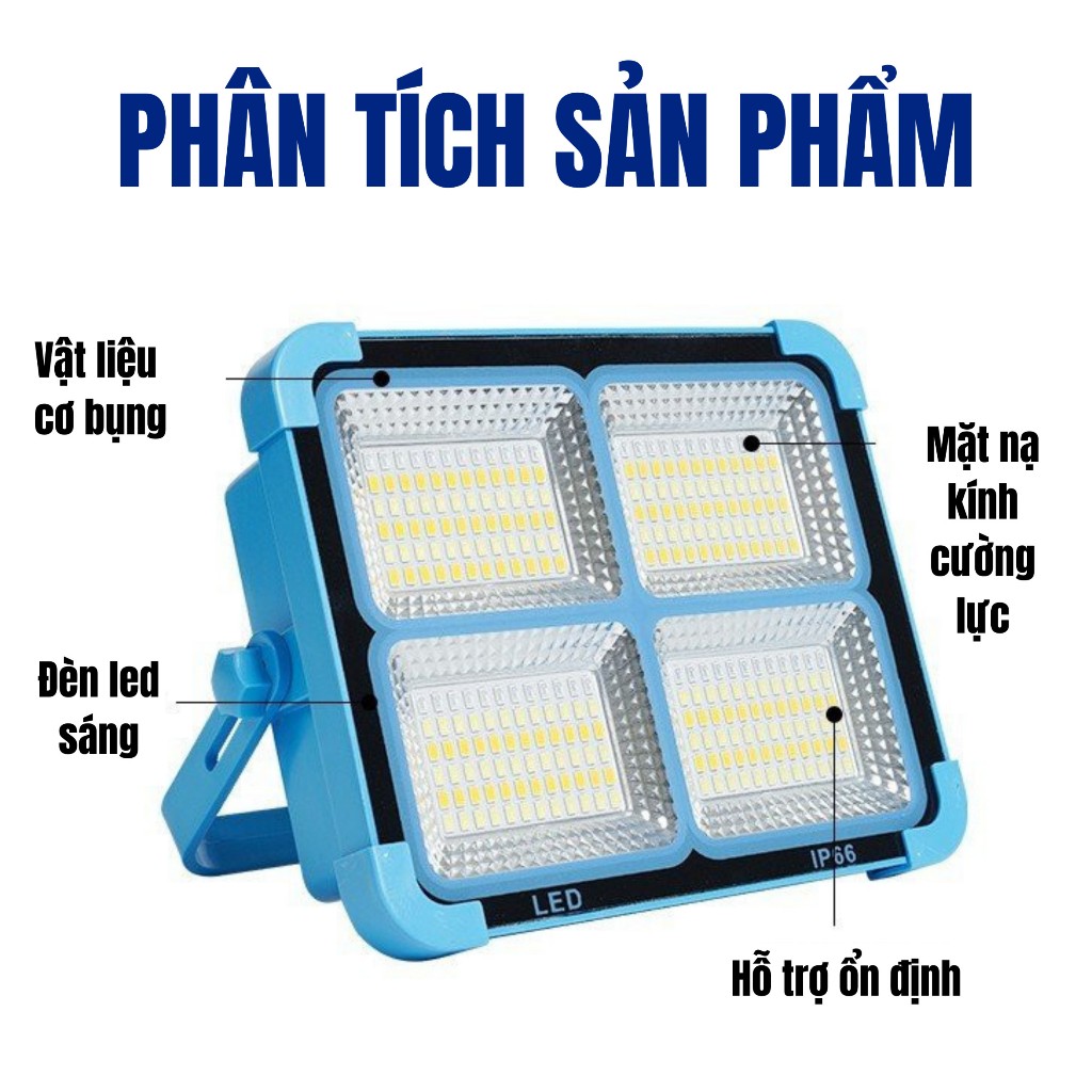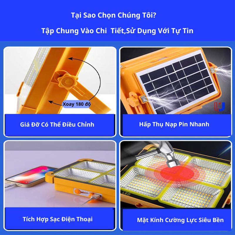 Giới thiệu: Đèn tích điện năng lượng mặt trời 50W siêu sáng sạc bằng năng lượng mặt trời hoặc điện có cổng USB sạc điện thoại chống nước