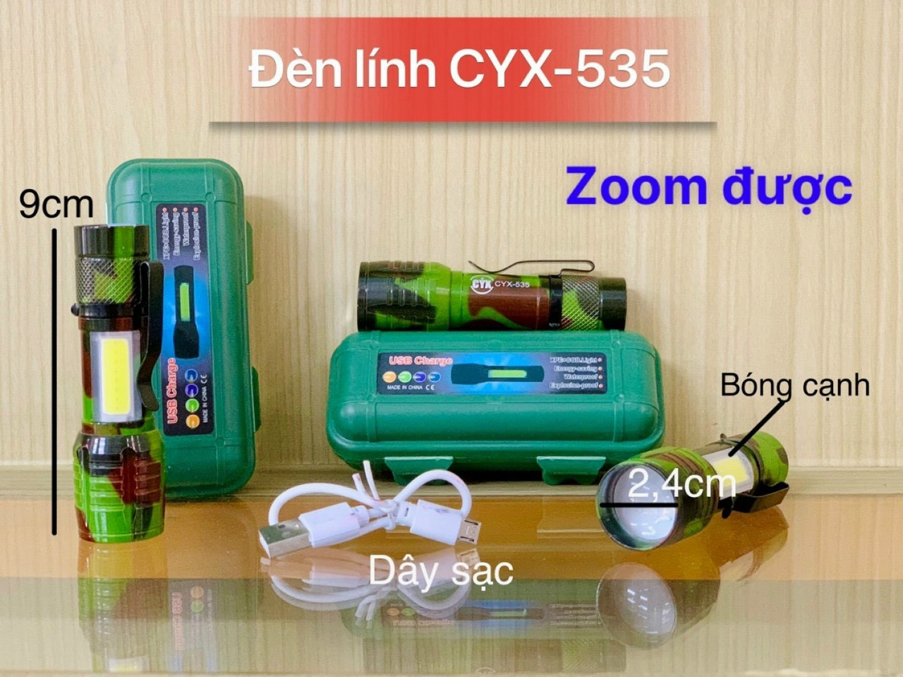 Đèn Pin MINI Siêu Sáng Cao Cấp Có Zoom Tặng Kèm Hộp mã 535 màu lính