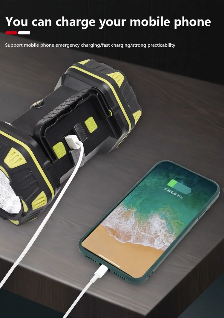 Đèn sử dụng cổng sạc microUSB để sạc và tích hợp thêm một cổng USB để sử dụng như pin dự phòng sạc cho các thiết bị di động cầm tay khác.