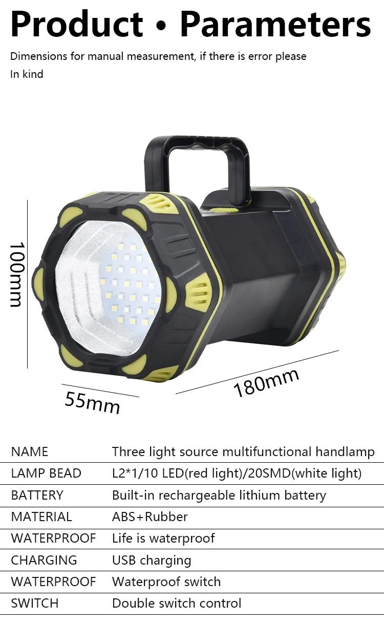 Đèn pin sạc xách tay sử dụng nguồn sáng là bóng đèn XHP75 – XML P75 (nhập Mỹ) cho ánh sáng trắng, ánh sáng đỏ, độ sáng cao. Công suất chiếu sáng tối đa của đèn W.✔ Đèn sử dụng chóa đèn to 16cm với kính lồi cho phép chiếu sáng xa lên tới ~1000 mét trong đêm tối.