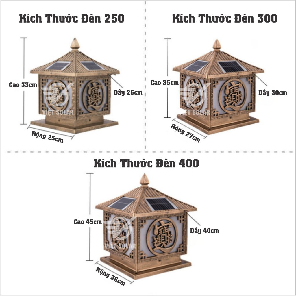 kích thước Đèn năng lượng mặt trời trụ cổng SV01