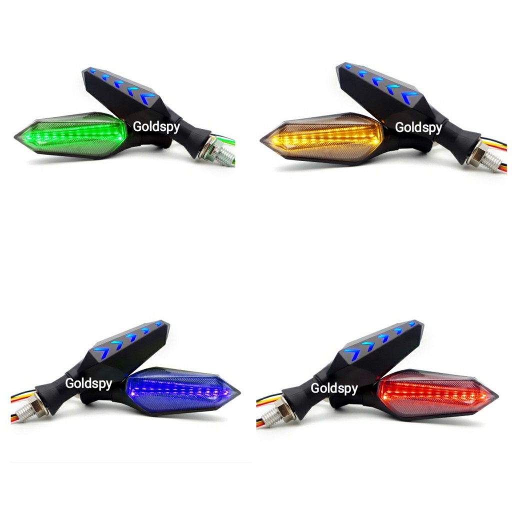 Đèn xi nhanh cho xe máy thiết kế khá ấn tượng dành cho các dòng xe, với mặt trước là xi nhan vàng truyền thống, mặt sau led xanh hình mũi tên khá ấn tượng. Với ánh sáng rất tốt, an toàn cho người tham gia giao thông. Thương hiệu này hiện tại khá được ưa chuộng ở Việt Nam