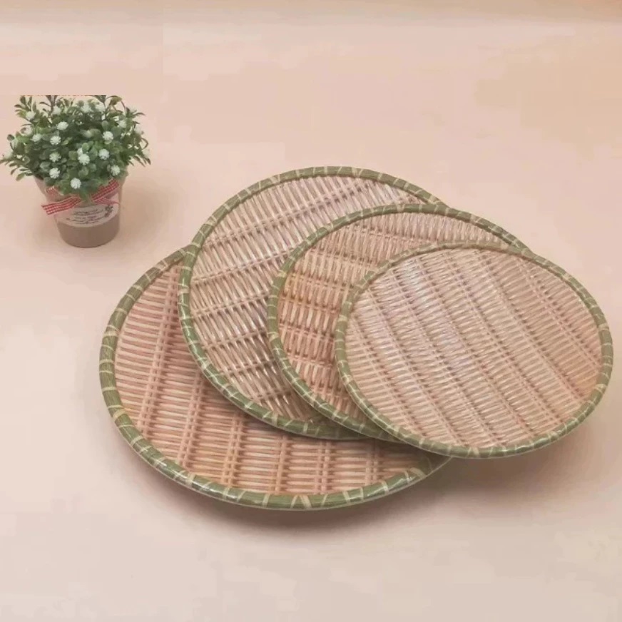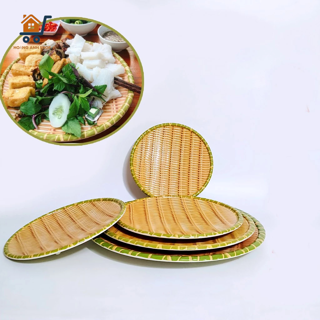 Đĩa nhựa giả mây tre đan mây, Mẹt tre tròn cao cấp đủ size có chân đế để hoa quả, Mẹt bún đậu mắm tôm