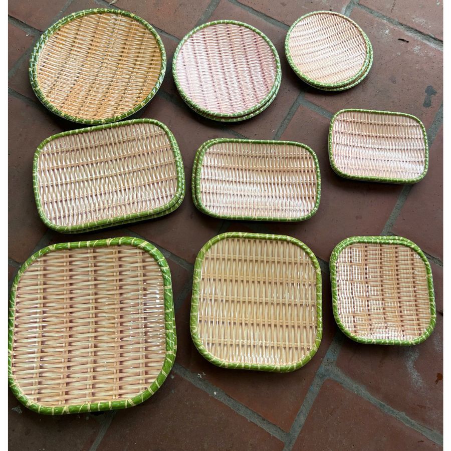– Mẹt nhựa giả mây tre đan đủ size, đĩa phíp nhiều kiểu tròn, chữ nhật rất phù hợp bán bún đậu mắm tôm hay để đồ ăn