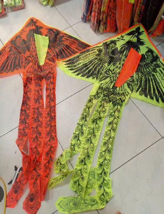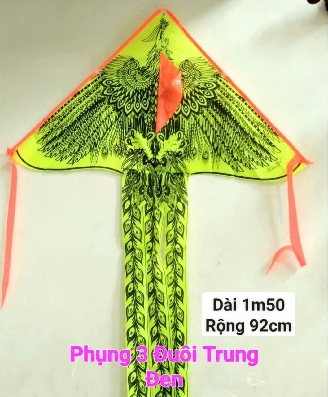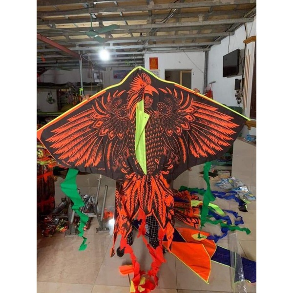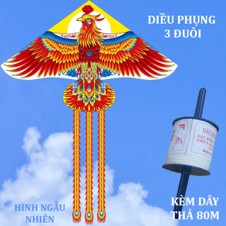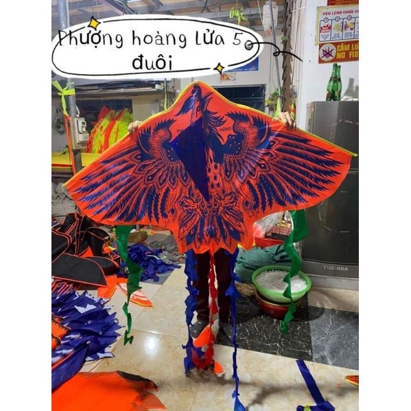 Diều phượng hoàng lửa 5 đuôi màu, phụng 5 đuôi màu, phụng cô tiên 5 đuôi màu, thần điêu, chim phi điểu 5 đuôi màu, cá mập to, chim ưng to….. tặng kèm dây.