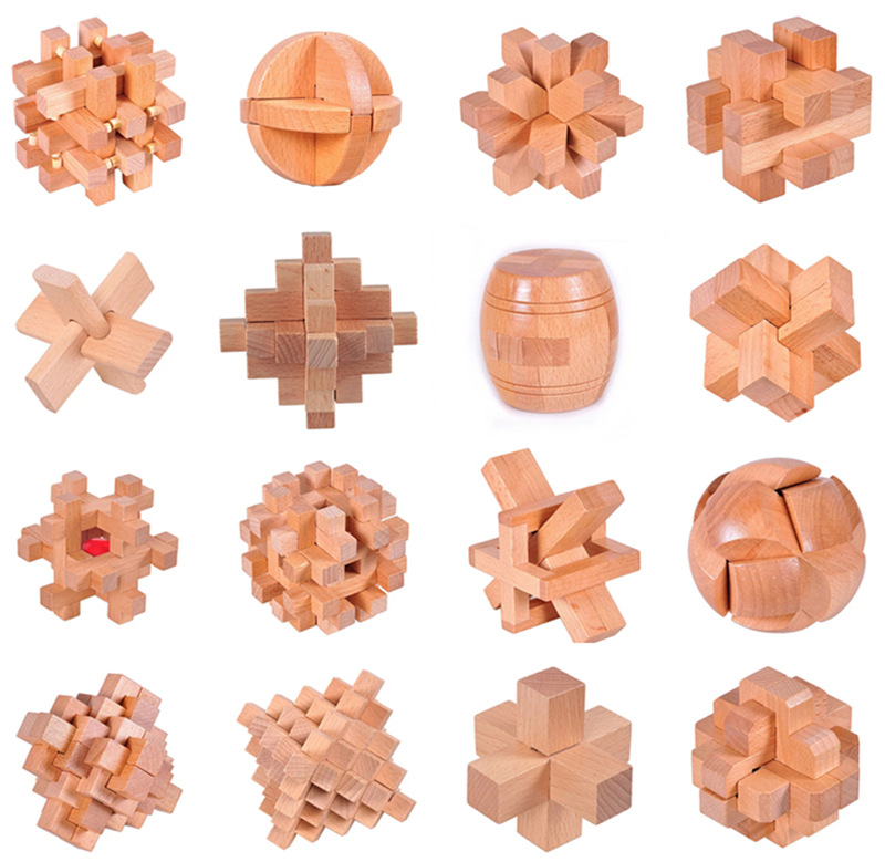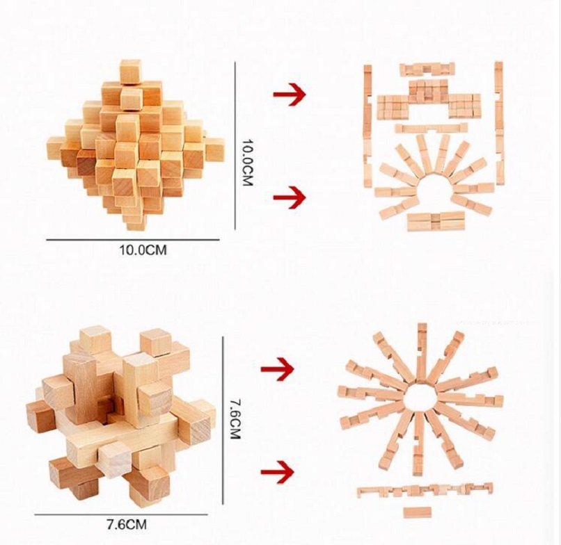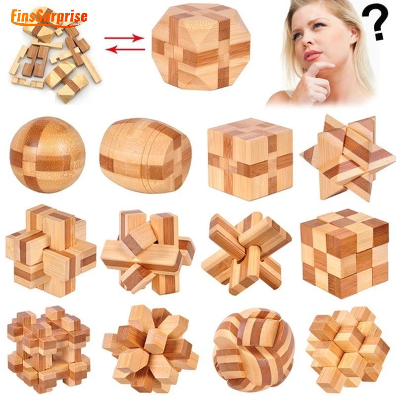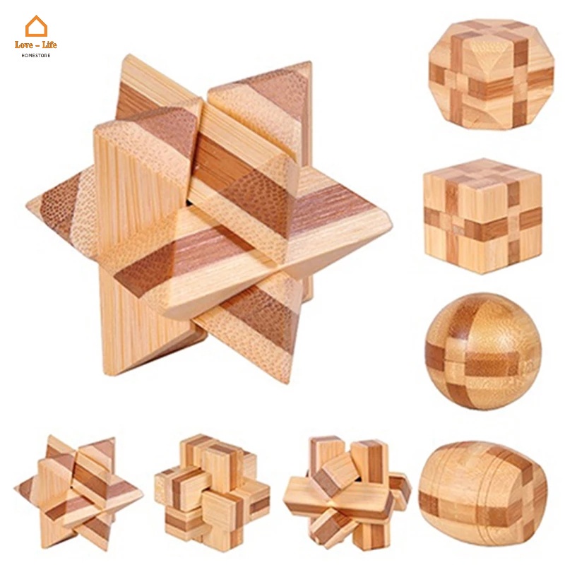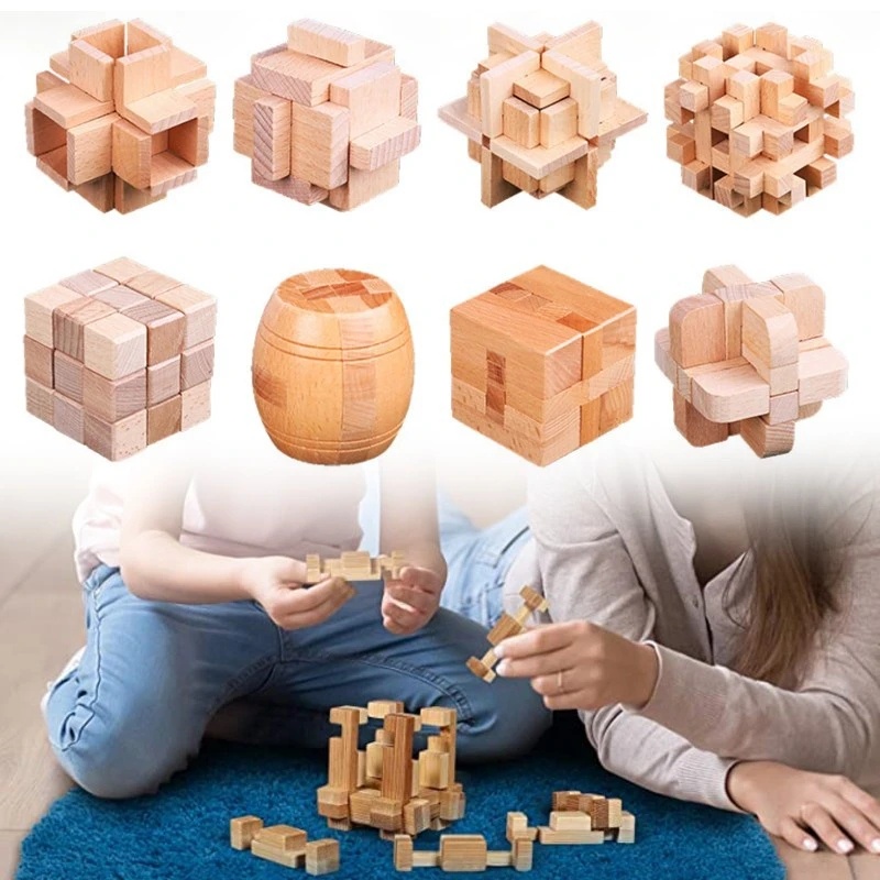Iq Brain Teaser Kong Ming Lock 3D Gỗ lồng vào nhau Câu đố Burr Trò chơi Đồ chơi Tre cho Người lớn Trẻ em
