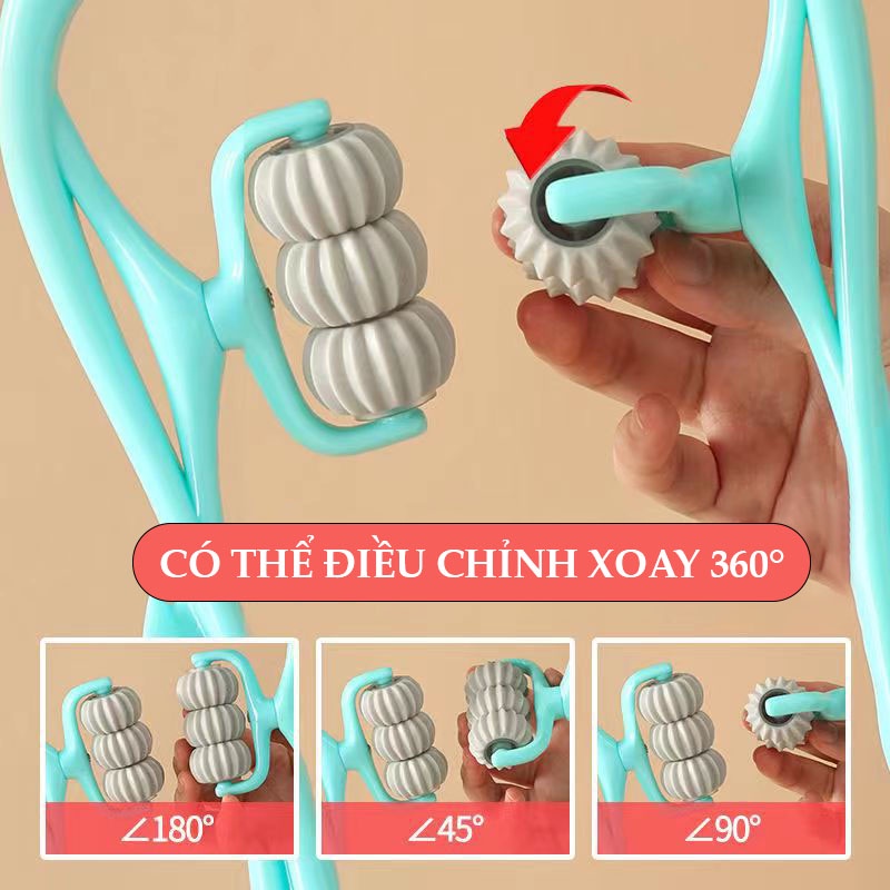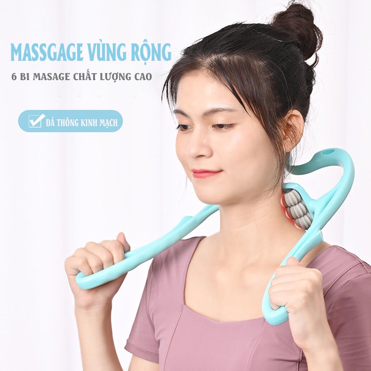 ƯU ĐIỂM VƯỢT TRỘI: Dụng Cụ Massage Cổ Vai Cầm Tay 6 Con Lăn, Mát Xa Cổ Vai Gáy, Lưng, Chân, Tay