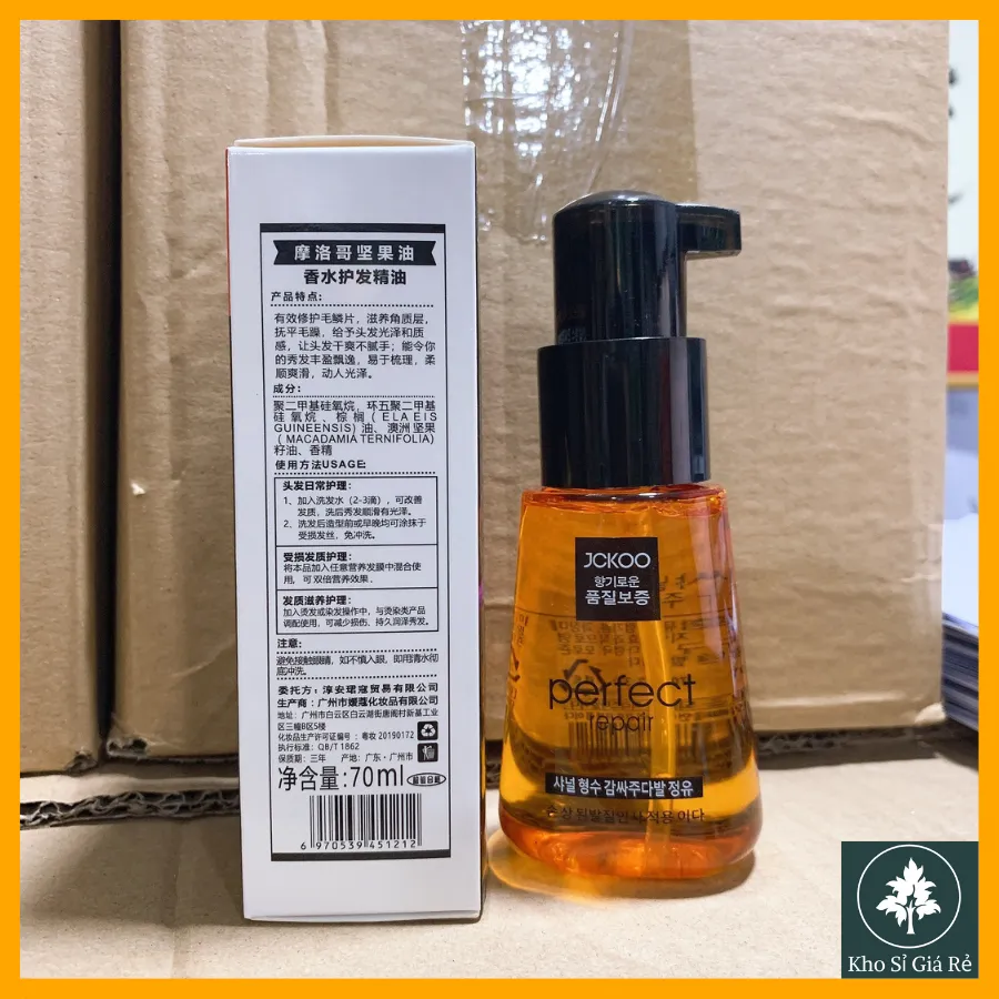 ✔ Gel dưỡng tóc JCKOO Perfect Repair Hair Serum là dạng tinh chất phục hồi tóc thật hoàn hảo với chiết xuất chính từ dầu Argan, thành phần bí quyết tạo nên thương hiệu dưỡng tóc vạn- người- mê ✔ Bên cạnh thành phần dầu Argan huyền thoại, các thành phần bổ sung quan trọng như sữa ong chúa và tinh dầu hoa hồng cũng góp phần đem đến 3 tác động vượt trội cải thiện những hư tổn thường thấy đặc biệt nơi chân tóc như chẻ ngọn, khô gãy…, giúp ngọn tóc chắc khoẻ ngừa rụng. ✔ Và đặc biệt Tinh dầu Perfect Repair Hair Serum có khả năng bảo vệ lưu giữ mái tóc càng thêm óng mượt với hiệu ứng 3D đẹp-từ-mọi-góc-nhìn. Tất cả bạn sẽ được trải nghiệm chỉ trong vòng 7 ngày nha. ✔ Dưỡng Tóc JCKOO Perfect Repair Hair Serum dạng lỏng, trong suốt, lúc mới xoa ra tay thấy có vẻ nhờn nhưng không dính, giống dầu nhưng nhẹ hơn. Nhưng bôi lên tóc thì không bị nhờn, không bị rít không gì hết.