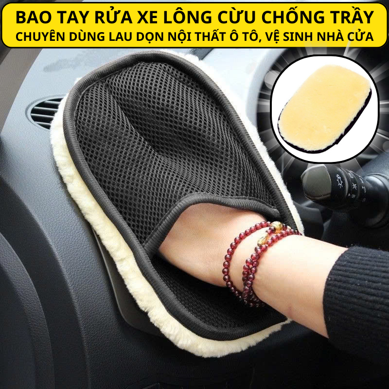 Bao tay rửa xe hay lau bóng sơn lông cừu 2 mặt