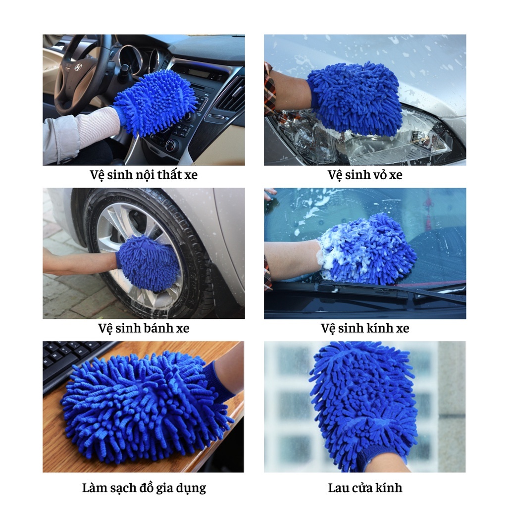 - Găng tay rửa xe ô tô gồm nhiều sợi xúc tu được làm bằng sợi micro-fiber có độ mềm mịn cao.