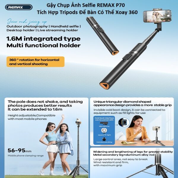 Gậy tự sướng tích hợp phát trực tiếp 1.6M P70