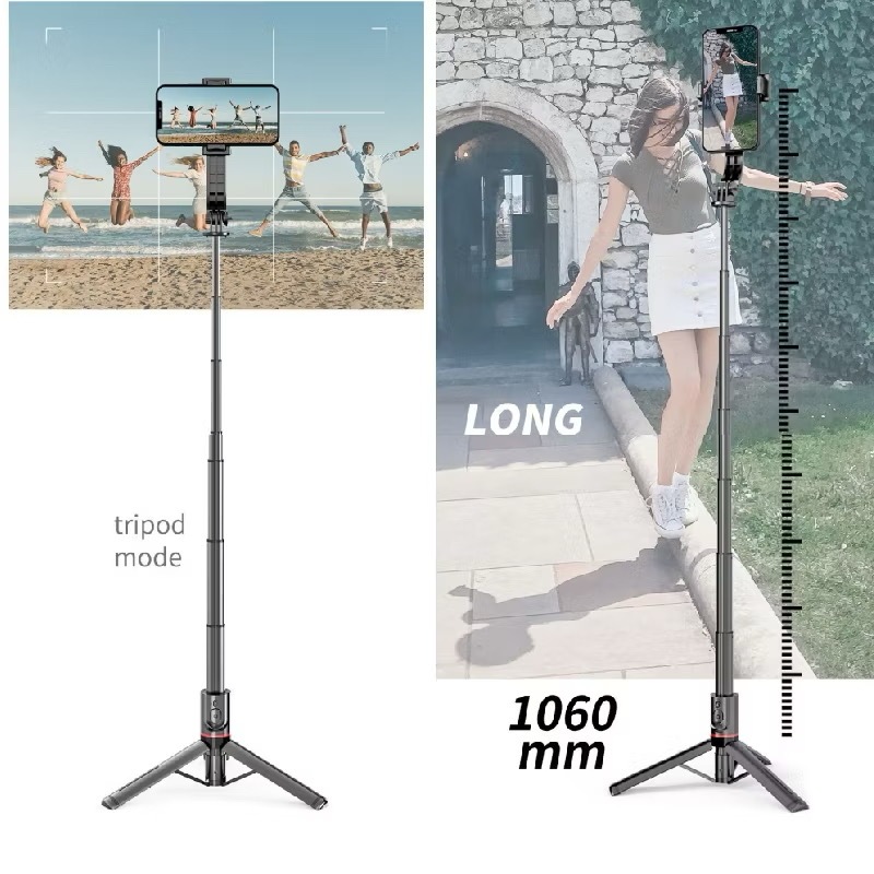 Gậy Tripod Chụp Ảnh L12 có nút Bluetooth Tiện Dụng Xoay 360 Độ, Gập Lên Xuống 220 độ, Giá Đỡ Hợp Kim Nhôm Gia Cố.