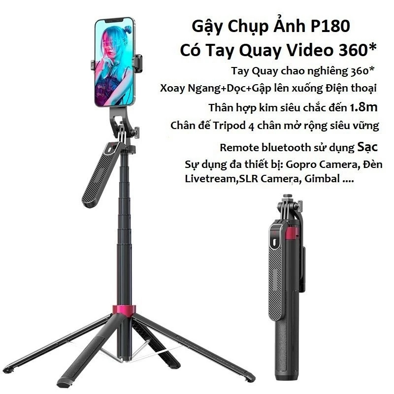 – Chiều cao lên tới 1m7, kết nối blt remote điều khiển từ xa, tương thích nhiều dòng đthoai khác nhau.