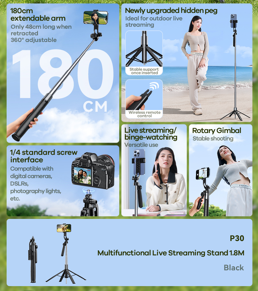 1. Cải tiến đầu tiên trong ngành: Chốt ẩn được nâng cấp, đảm bảo ảnh chụp ổn định mà không bị rung, lý tưởng để phát trực tiếp ngoài trời