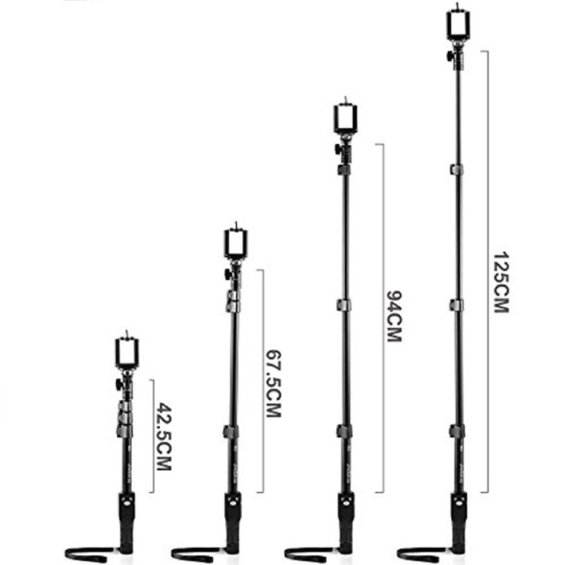 - Dài 42cm khi rút gọn, có thể kéo dài ra 1,2 mét khi sử dụng.