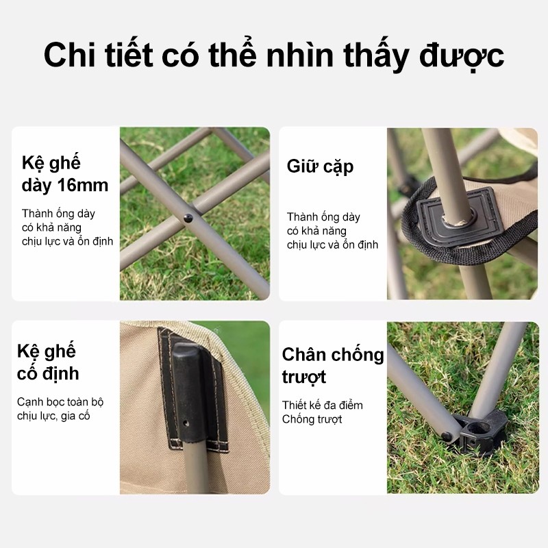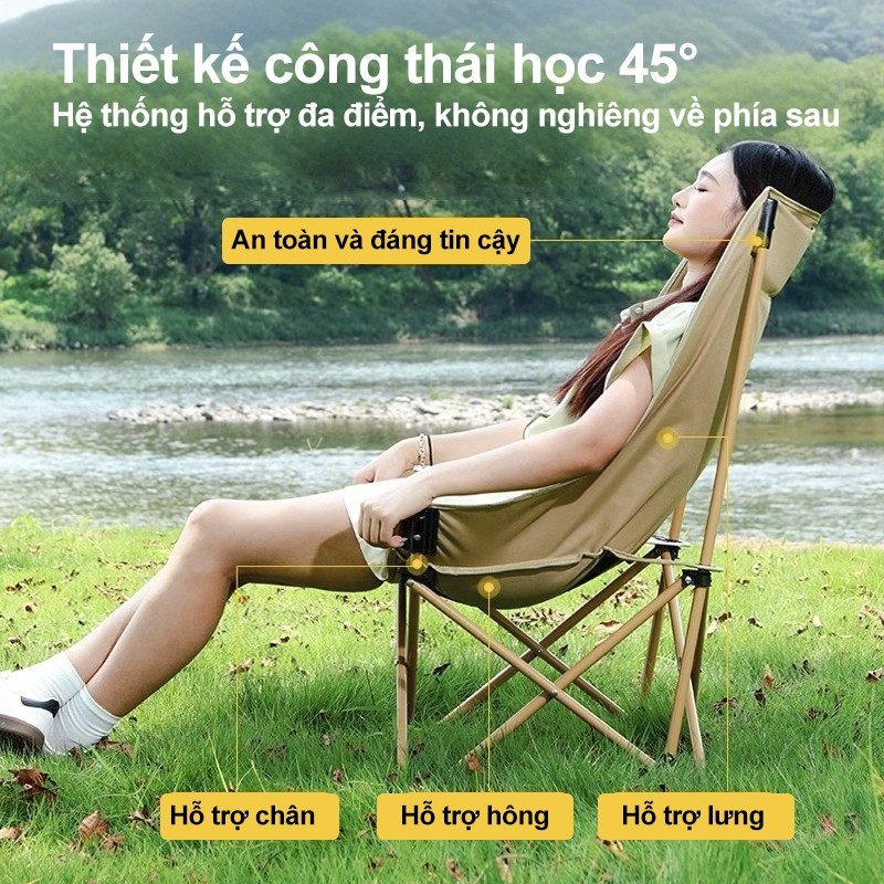 Ghế tựa lưng gấp gọn với khung hợp kim nhôm chắc chắn, thiết kế linh hoạt dễ dàng xếp gọn và mang theo, thích hợp cho dã ngoại, câu cá, du lịch hoặc sử dụng tại nhà.
