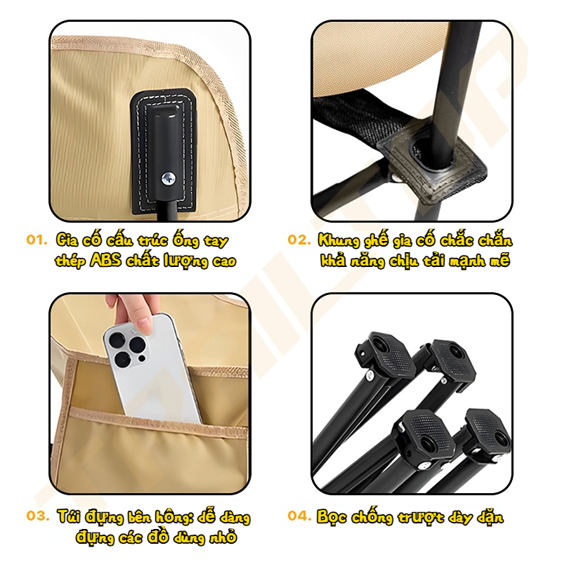 Bộ sản phẩm bao gồm: 1 ghế xếp gấp, 1 túi đựng