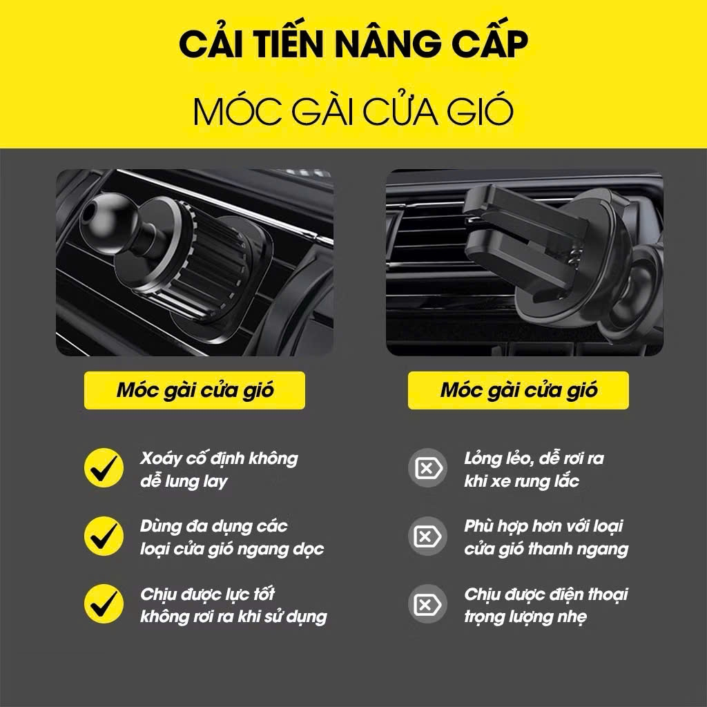 ☑️ Thiết kế lực tam giác, điện thoại có thể được khóa chắc chắn ngay cả khi phanh, rẽ, trên đường gập ghềnh, giúp lái xe an toàn hơn.