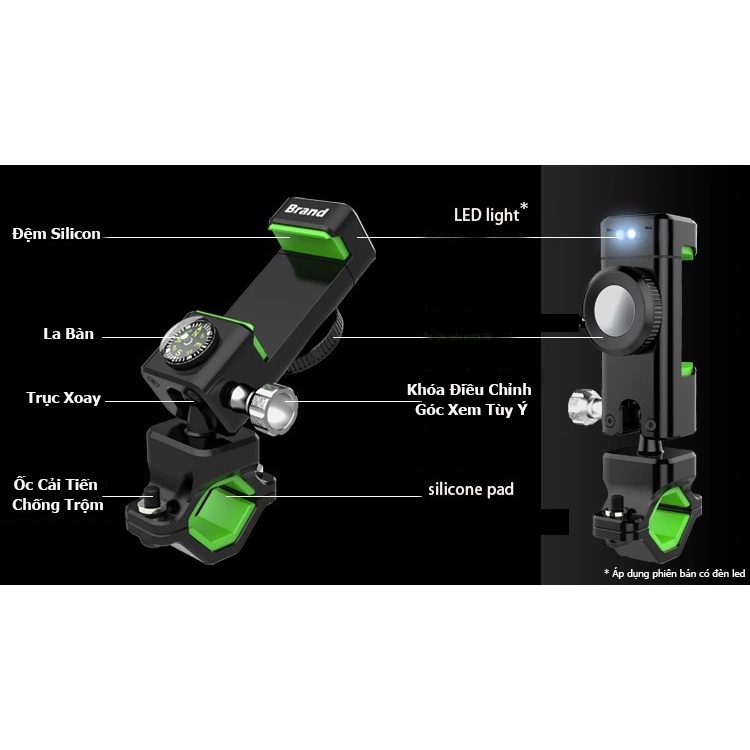 Yêu cầu lắp đặt: Điện thoại hoặc xe máy phải có ghi đông thẳng.