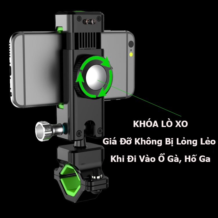 Khóa lò xo trên kẹp chắc chắn, chống rung lắc hiệu quả khi đi vào ổ gà.