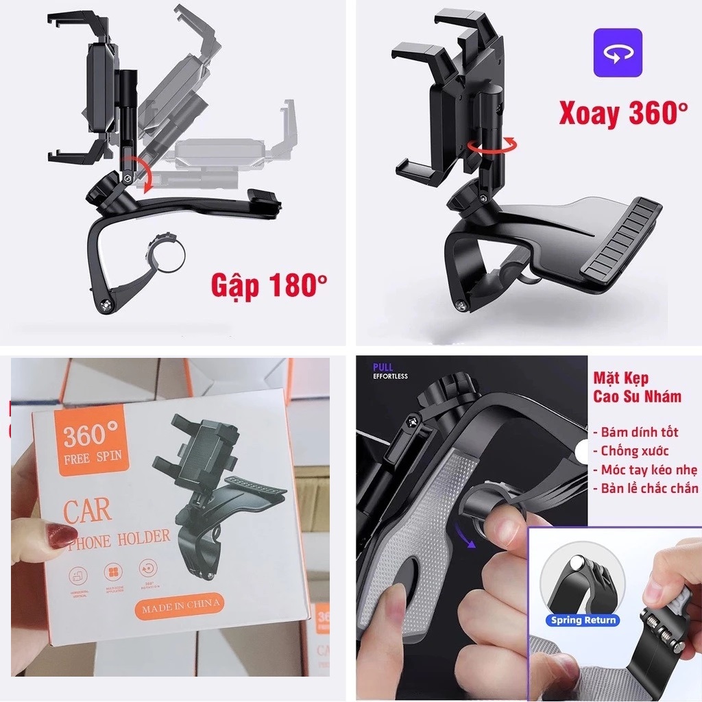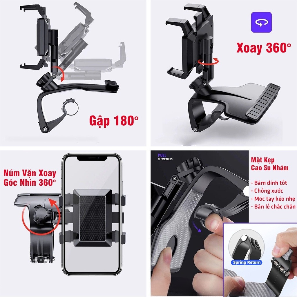 – Kẹp điện thoại có thể xoay 360 độ ở mọi vị trí
