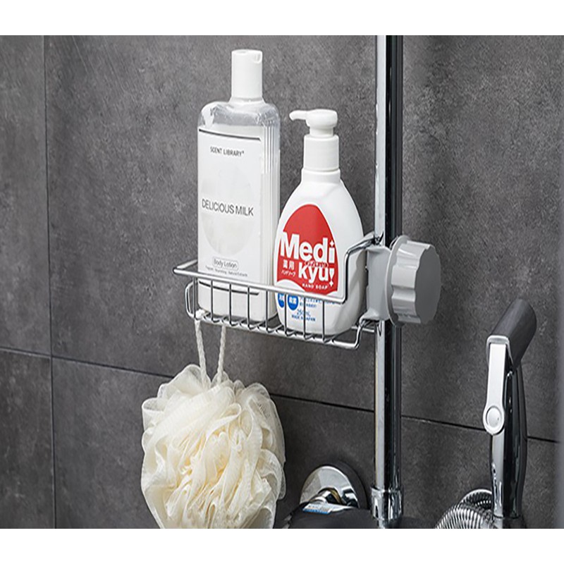 Khay/ Giá treo inox thiết kế gắn vòi nước để đồ tiện lợi