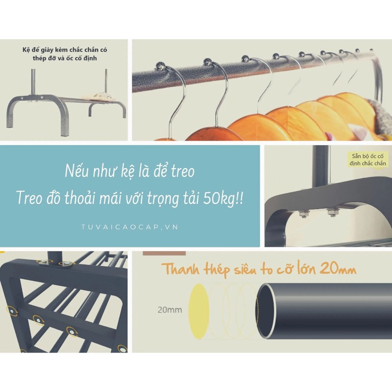 – Kệ treo quần áo đa năng là sản phẩm mới, được thiết kế hiện đại, nhỏ gọn, tiện dụng chắc chắn với nhiều tầng giúp bạn treo và để được rất nhiều quần áo, chăn màn, túi xách,cùng các vật dụng gia đình.