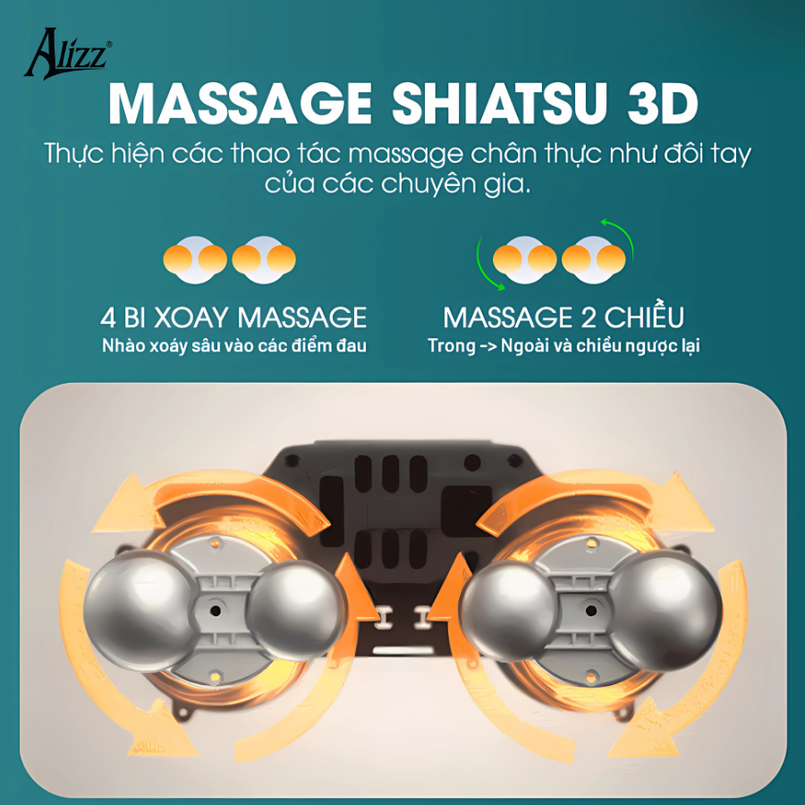 - Chế độ vận hành: massage xoay chiều, kết hợp nhiệt