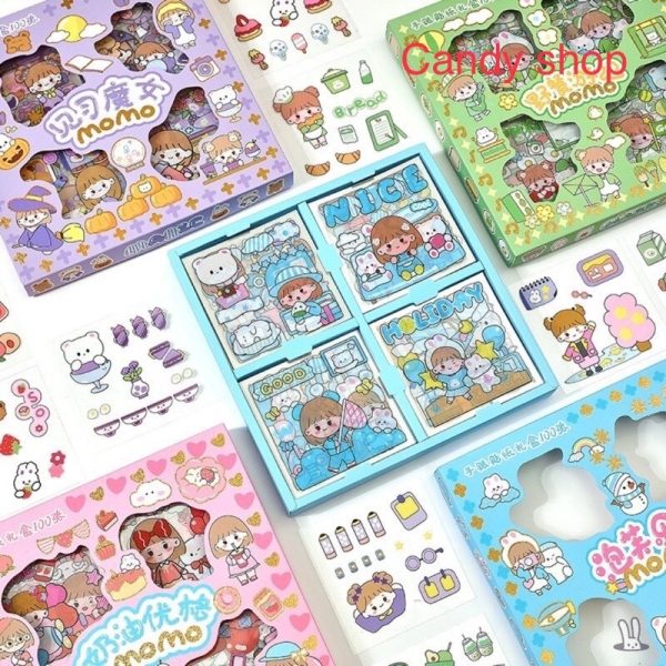 Hộp 100 Tấm Sticker Nhãn Dán Dễ Thương