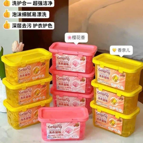 VIÊN GIẶT CÔ ĐẶC GELIJING 2 In 1 chiếc xuất từ hoa anh đào Nhật Bản và Carageenan giúp làm sạch và lưu hương cho quần áo gấp 8 lần bột giặt thường
