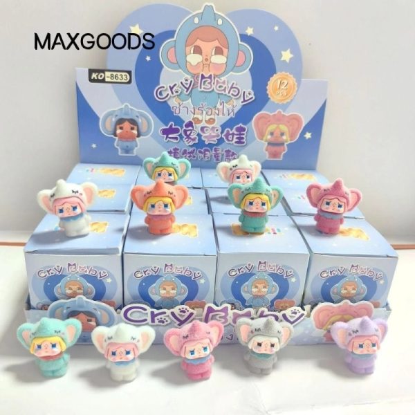 Hộp Crybaby Đồ trang trí nhỏ Hộp Tượng thu nhỏ Dòng voi Phim hoạt hình POP MART Đổ xô Popbean Trang trí máy tính để bàn Dễ thương