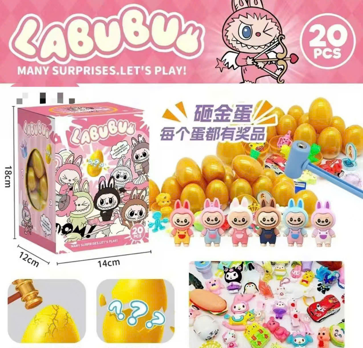 Bộ đồ chơi gồm 20 trứng labubu và búa đập