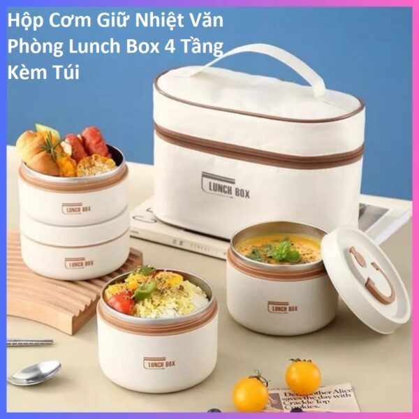 Hộp Cơm Giữ Nhiệt Văn Phòng Lunch Box 4 Tầng Kèm Túi