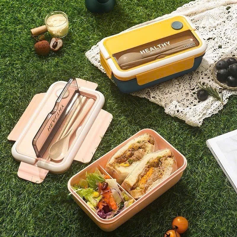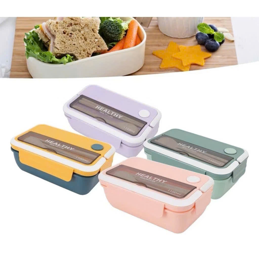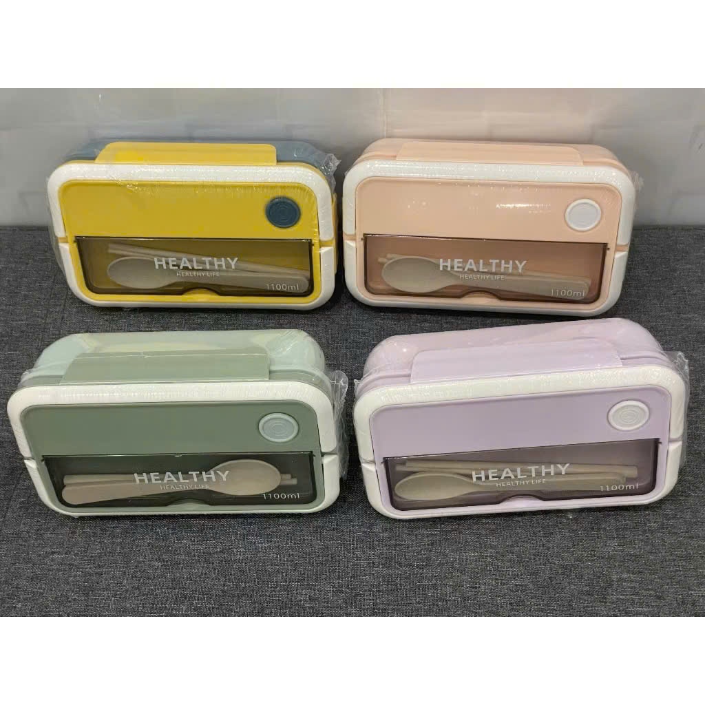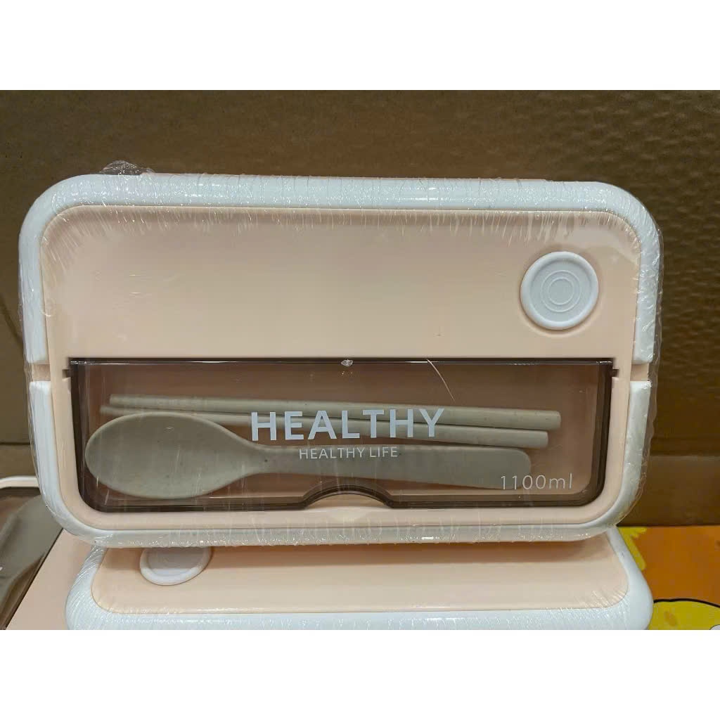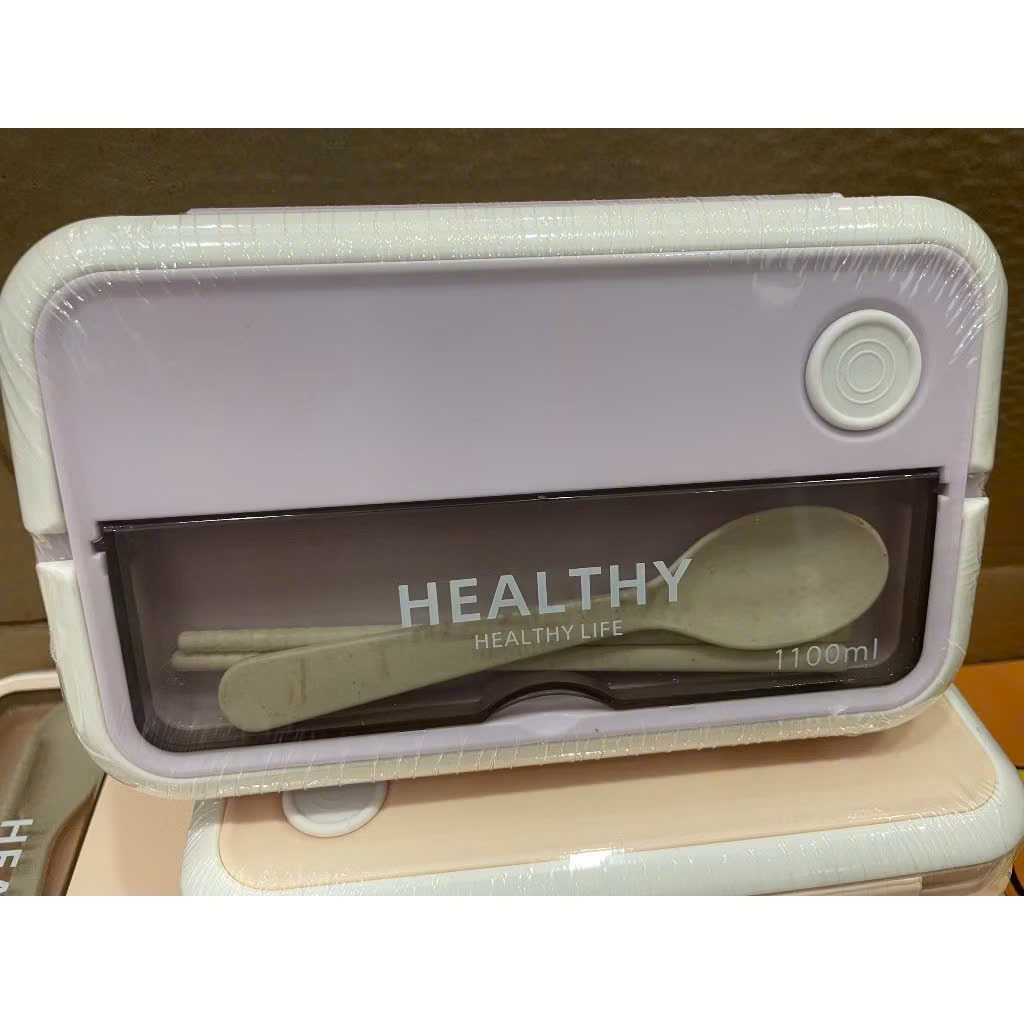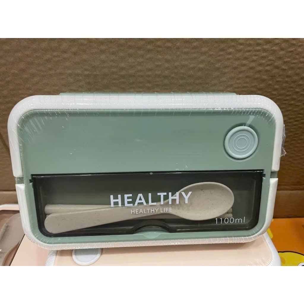 🍀 Hộp đựng cơm văn phòng HEALTHY có tặng kèm phụ kiện: Đũa 15cm, Muỗng 14.5cm. Có khay nhựa phía trên nắp để giữ đũa, muỗng sạch sẽ.