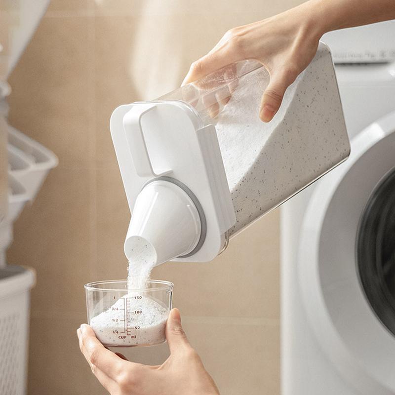 – Bột giặt chúng ta mua về thường được đựng trong bao bì lớn, rất khó để bảo quản và lấy bột giặt trong mỗi lần giặt đồ