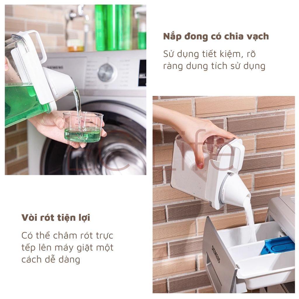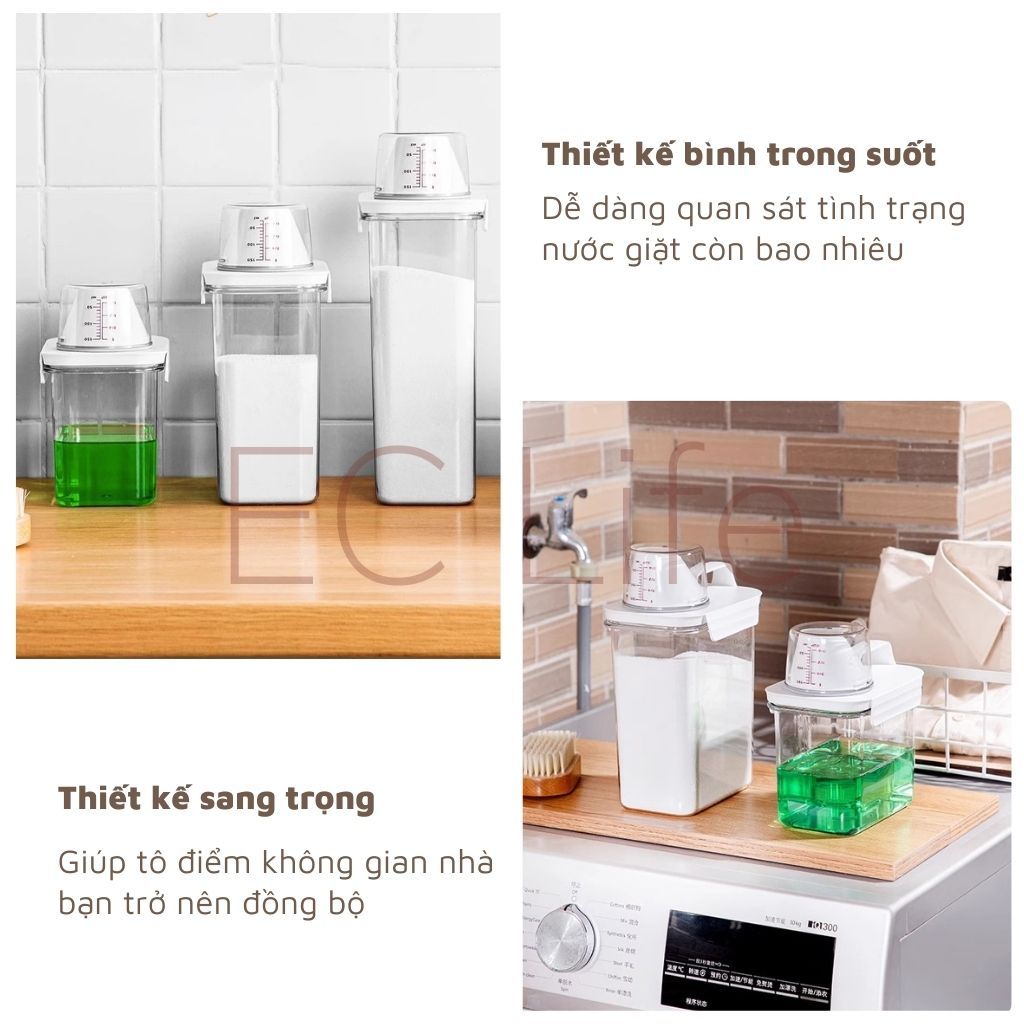 – Việc bảo quản nước giặt và nước xả trong hộp, còn giúp phần tiết kiệm tiền và bảo vệ môi trường