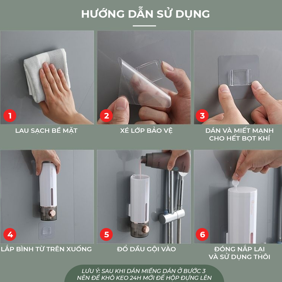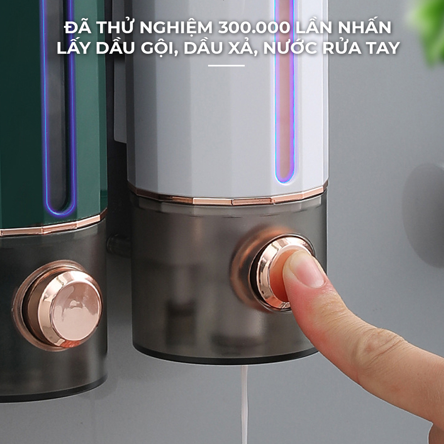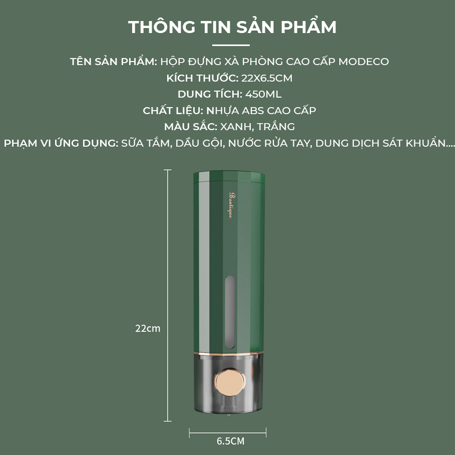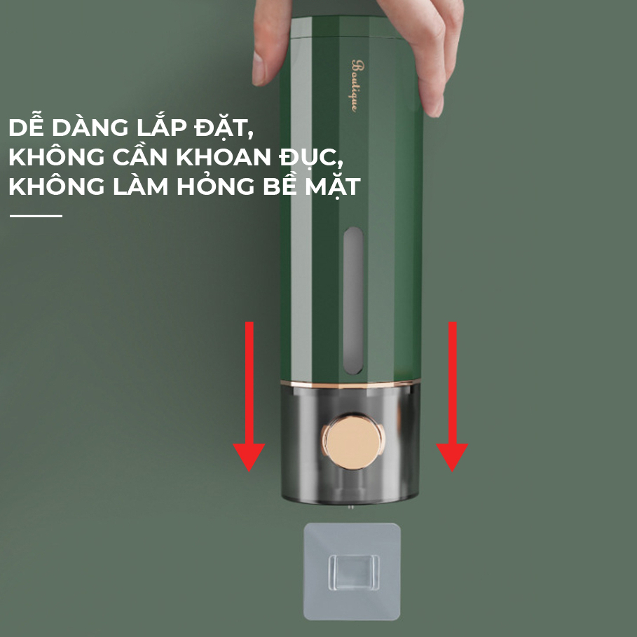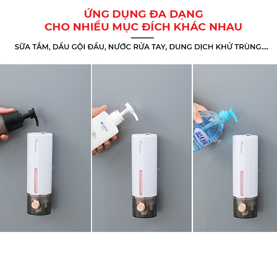 Hộp đựng sữa tắm, dầu gội, nước rửa tay có dung tích 450ml, lượng còn lại có thể nhìn thấy, không cần thêm chất lỏng thường xuyên. Hộp đựng sữa tắm, dầu gội, nước rửa tay được thiết kế tiện lợi với nút pha chế dễ dàng ấn vào để dễ sử dụng.