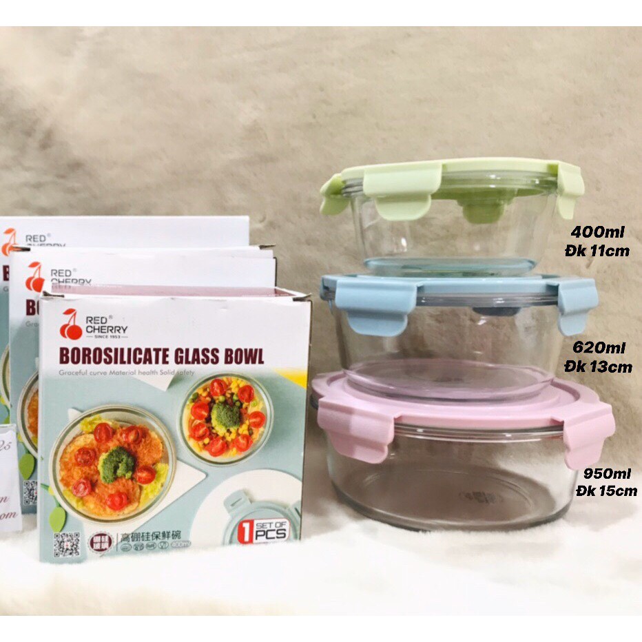 Hộp Thủy Tinh Thố Thủy Tinh Tròn Đựng Thực Phẩm Cao Cấp 400ML – Màu Ngẫu Nhiên