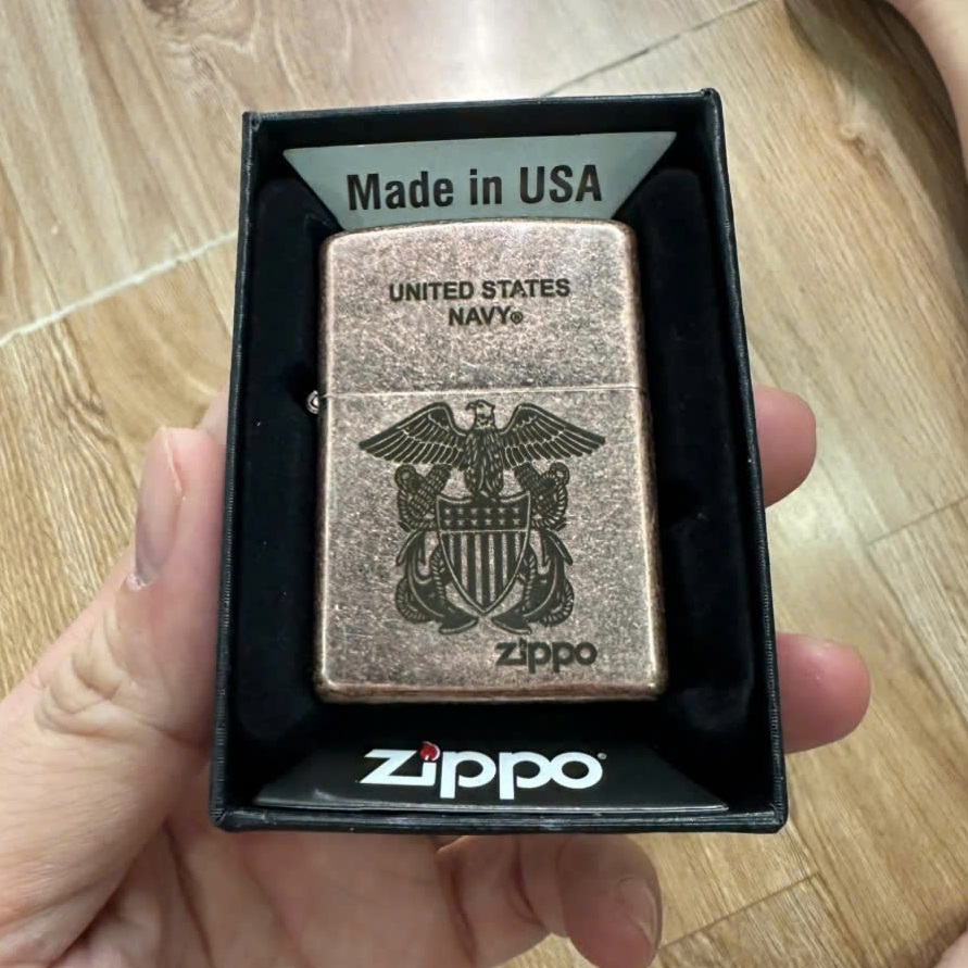 - Vỏ Zippo: Dòng Vỏ Bạc Giả Cổ Xi Bụi Tiêu Chuẩn Có Đầu Bo Tròn, Bản Lề 5 Chấu Chắc Chắn