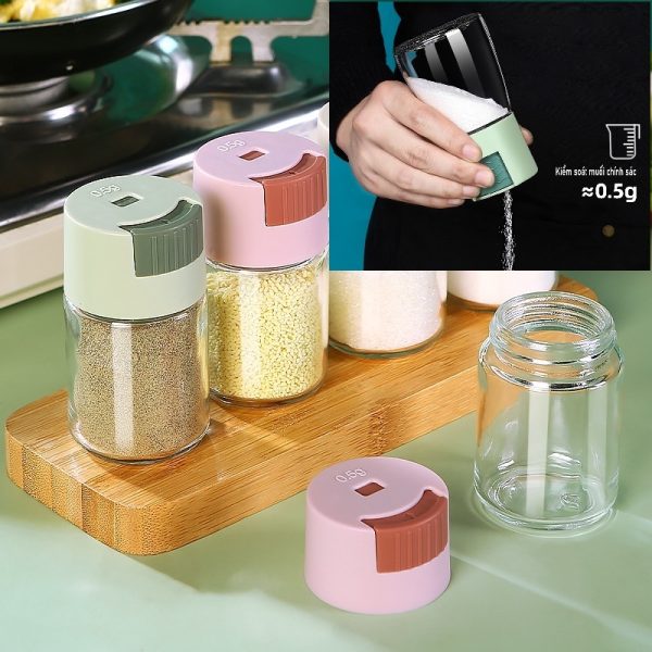 Hũ Đựng Gia Vị Thủy Tinh Nhà Bếp Bấm Nút Định Lượng, Lọ Đựng Gia Vị Thông Minh