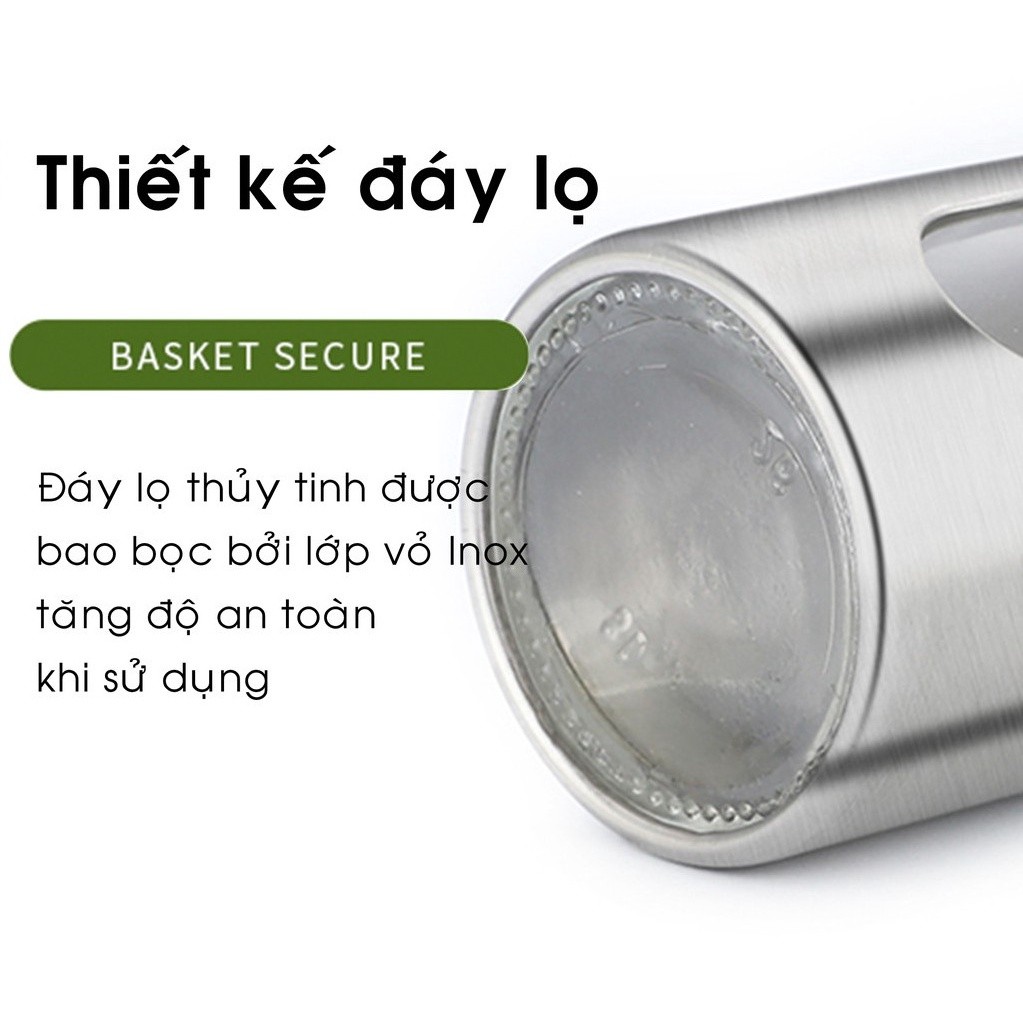 – Chất liệu: Inox loại tốt, dày, nắp xoay chắc chắn.