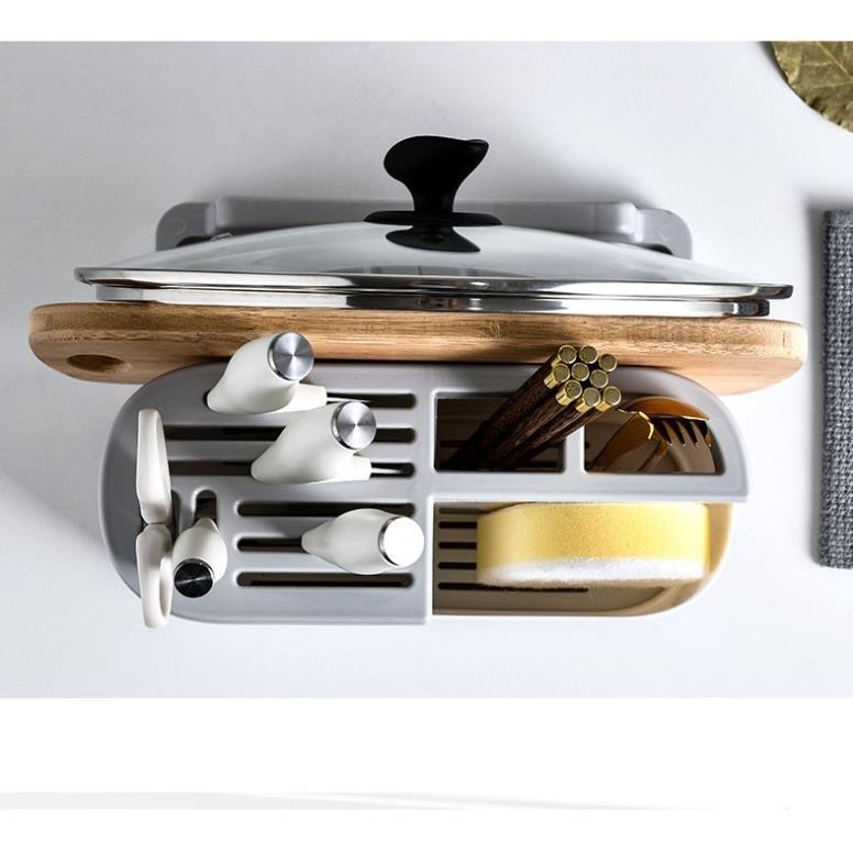 Khay kệ ống đựng cắm đũa muỗng dao kết hợp giá để úp thớt nắp vung đẻ đồ nhà bếp đa năng thông minh tiện ích
