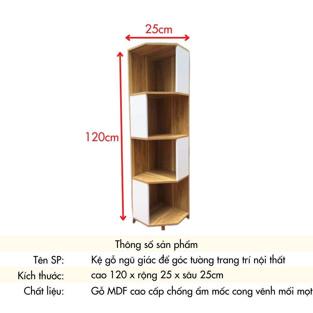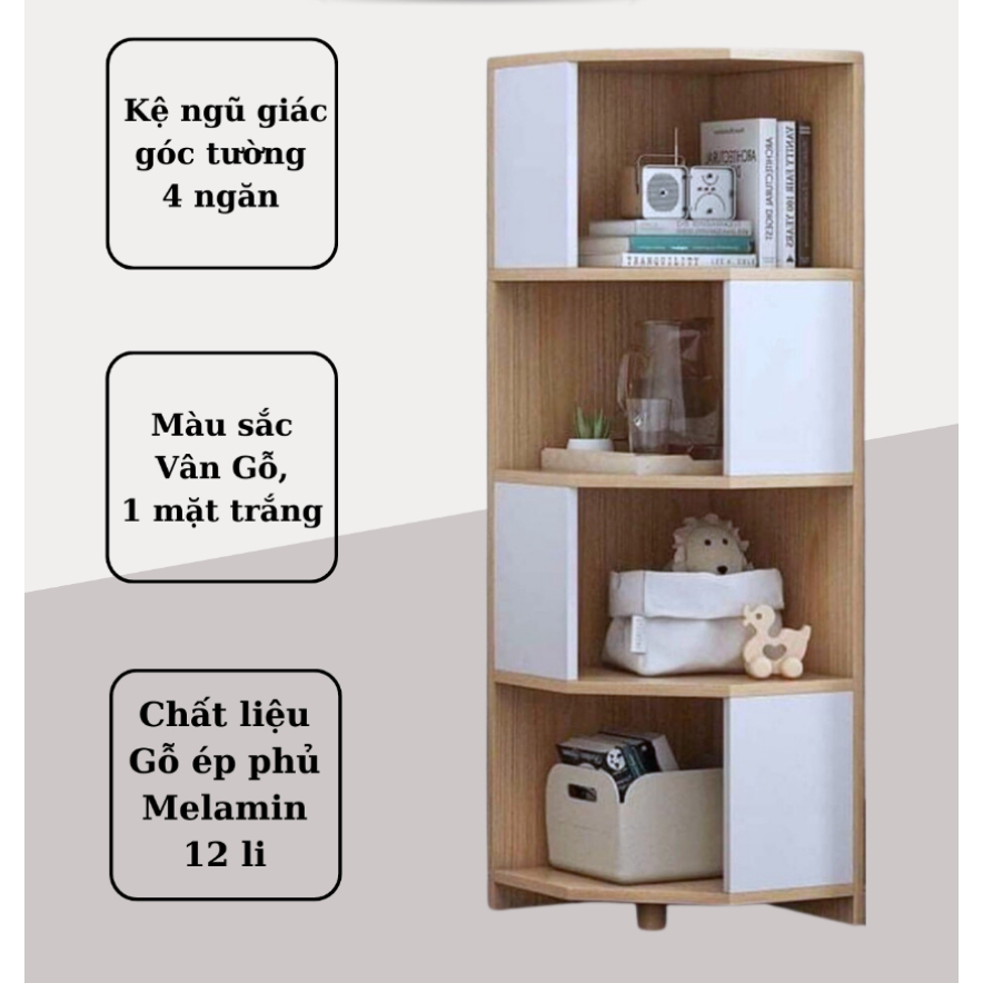 Kệ Gỗ Góc Ngủ Giác 4 Tầng 2 Màu