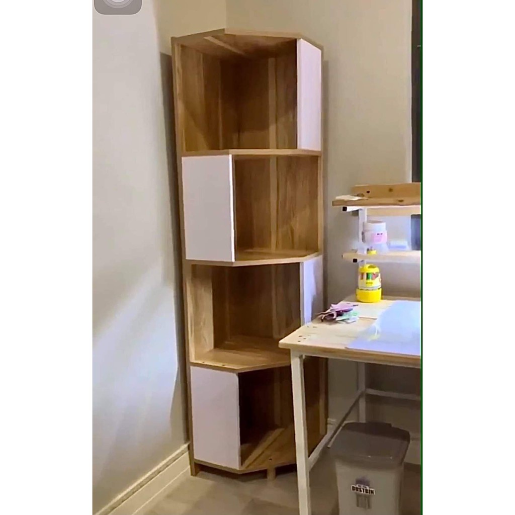 Thiết kế đơn giản và tiện lợi, tận dụng tốt các không gian góc tường thường được bỏ trống. Với chiều cao 1.2m được chia đều làm 4 tầng bạn sẽ tha hồ để mọi đồ vật từ vật dụng, sách vở cho đến đồ trang trí