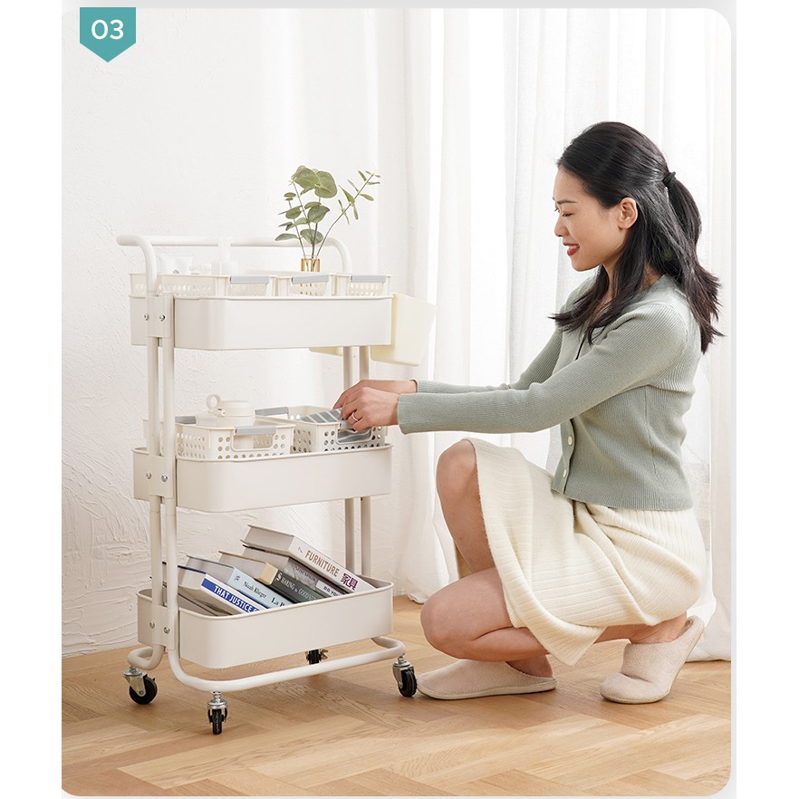 kệ để đồ 3 tầng đa năng có bánh xe màu trắng thanh lịch