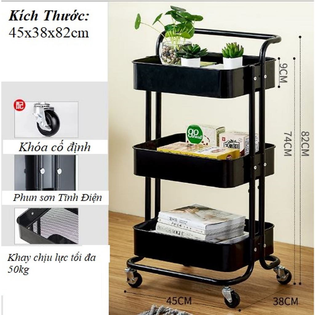 Kích thước kệ sắt 3 tầng có bánh xe